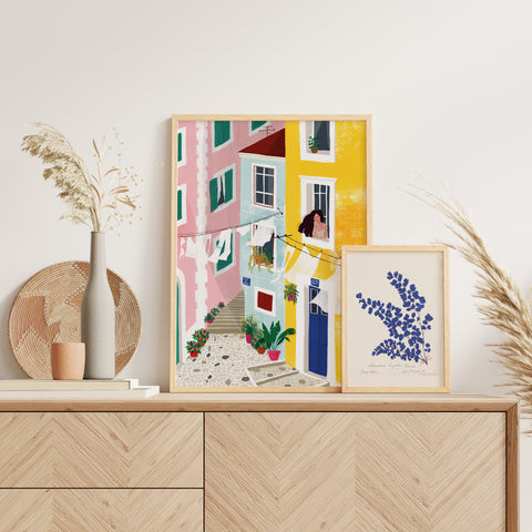 Perfect Pair er et sæt af to kunsttryk, der er omhyggeligt udvalgt for at komplementere og forbedre hinanden og give en følelse af balance. Denne komposition indfanger essensen af byarkitektur og den livlige atmosfære i hverdagen. Inkluderingen af planter tilføjer et strejf af naturlig skønhed til scenen. Denne plakat er en fængslende tilføjelse til ethvert rum og hylder charmen ved bylivet.