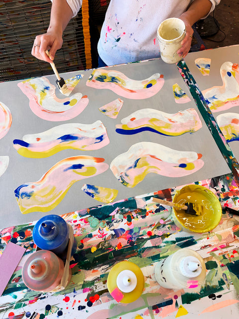 I paint and sketch a lot before each collection and develop all of my pattern and textures from there. I get a lot of my inspiration from fashion, interiors or from my collection of vintage children’s books. We want each Moglea collection to feel fresh and unique, so I try to limit my time on social media. Each collection should feel new and fresh.